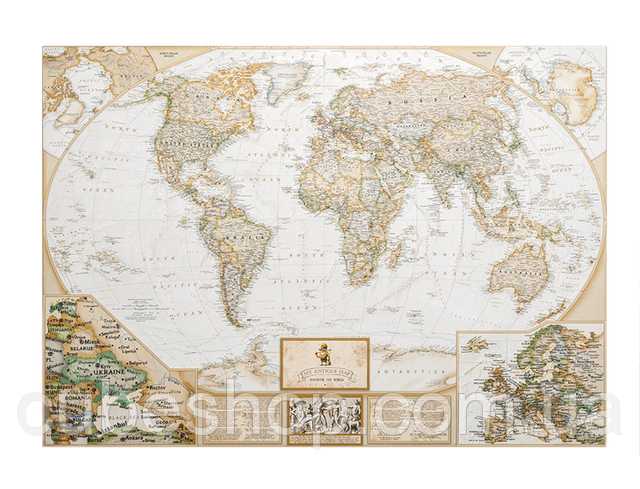 Скретч-мапа подорожей My Map Antique edition — це карта 3 в 1, в кутах зображені Європа та Україна, збільшені в 4 і 16 разів відповідно. Це дасть змогу точніше стерти шар, не залізаючи на сусідні території. Ти можеш розглядати не тільки подорожі світом, але також планувати пригоди по рідним Пенатам із шаленою скрупульозністю.