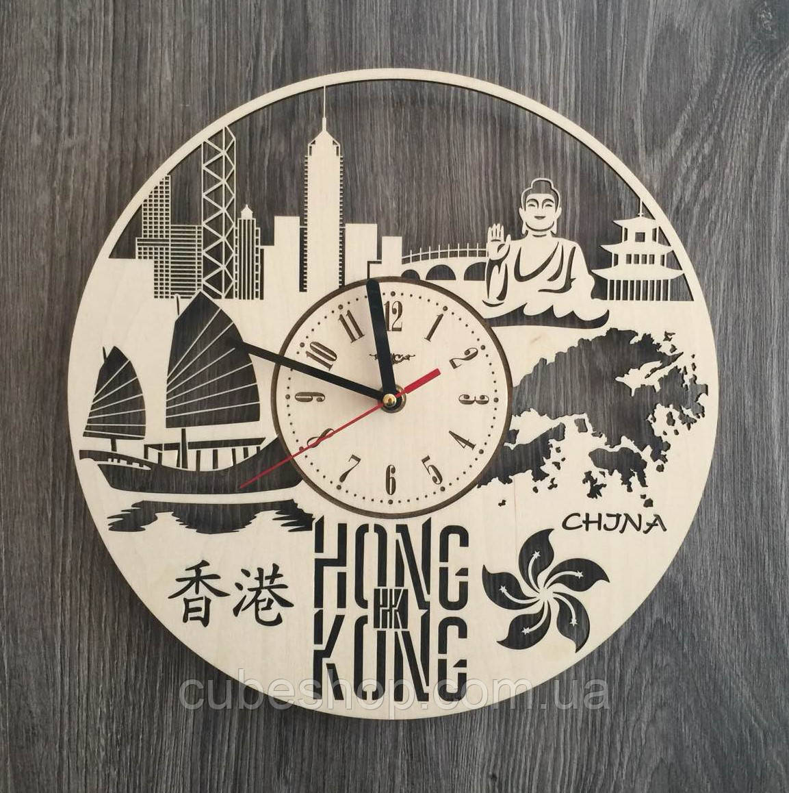Органічно та стильно в інтер'єр офісу туристичної фірми, холу готелю, кабінетів банку або залів тематичних кафе та ресторанів впишуться годинник настінний дерев'яний із силуетами Гонконгу. Їхній безшумний хід не буде порушувати робочу атмосферу нав'язливим тиканням.